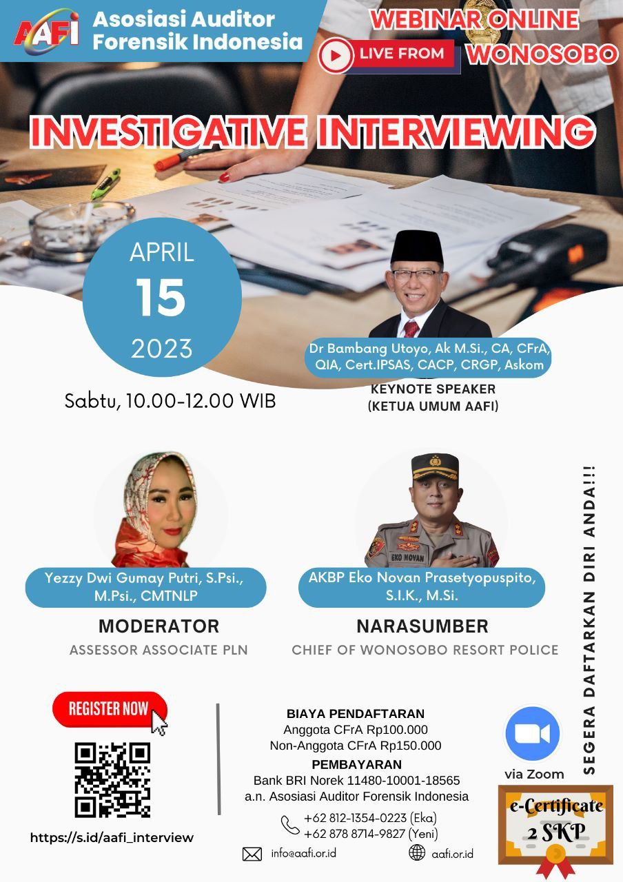 Asosiasi Forensik Auditor Indonesia (AAFI SOGASIO) mengundang Bapak/Ibu dalam Webinar Online dengan Tema INVESTIGATIVE INTERVIEWING